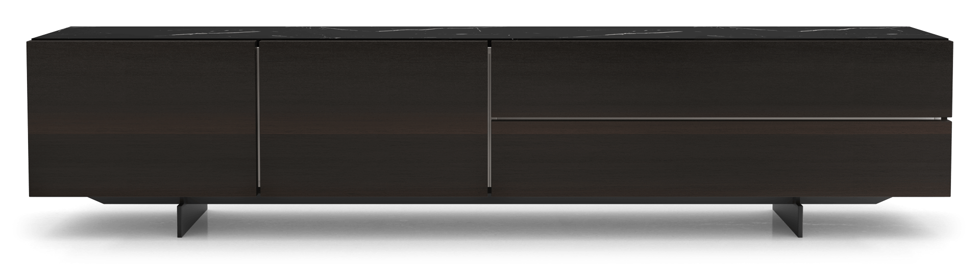 This low profile design offers plenty of space to tuck away your media equipment, including a pair of drawers and doors, making it easy for the design of this piece to take center stage. The beauty of this piece will quickly transform your media console into a modern, dramatic space. A scratch-resistant ceramic top with black marble effect perfectly finishes the cabinet in elegance. The Fletcher media cabinet provides the perfect platform for art pieces or a flat screen TV. Finished in a Bavaria imported smoked oak natural veneer, this furniture piece is stunning on its own or create a statement by pairing it with the other Fletcher pieces. Modloft Exclusive.